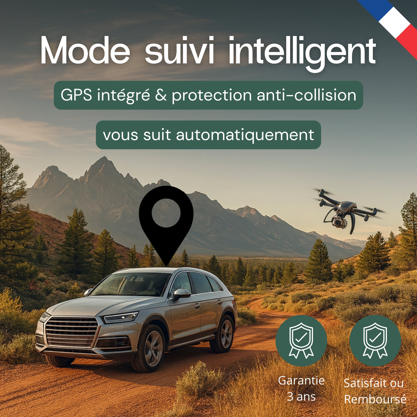• Mode suivi intelligent : vous suit automatiquement