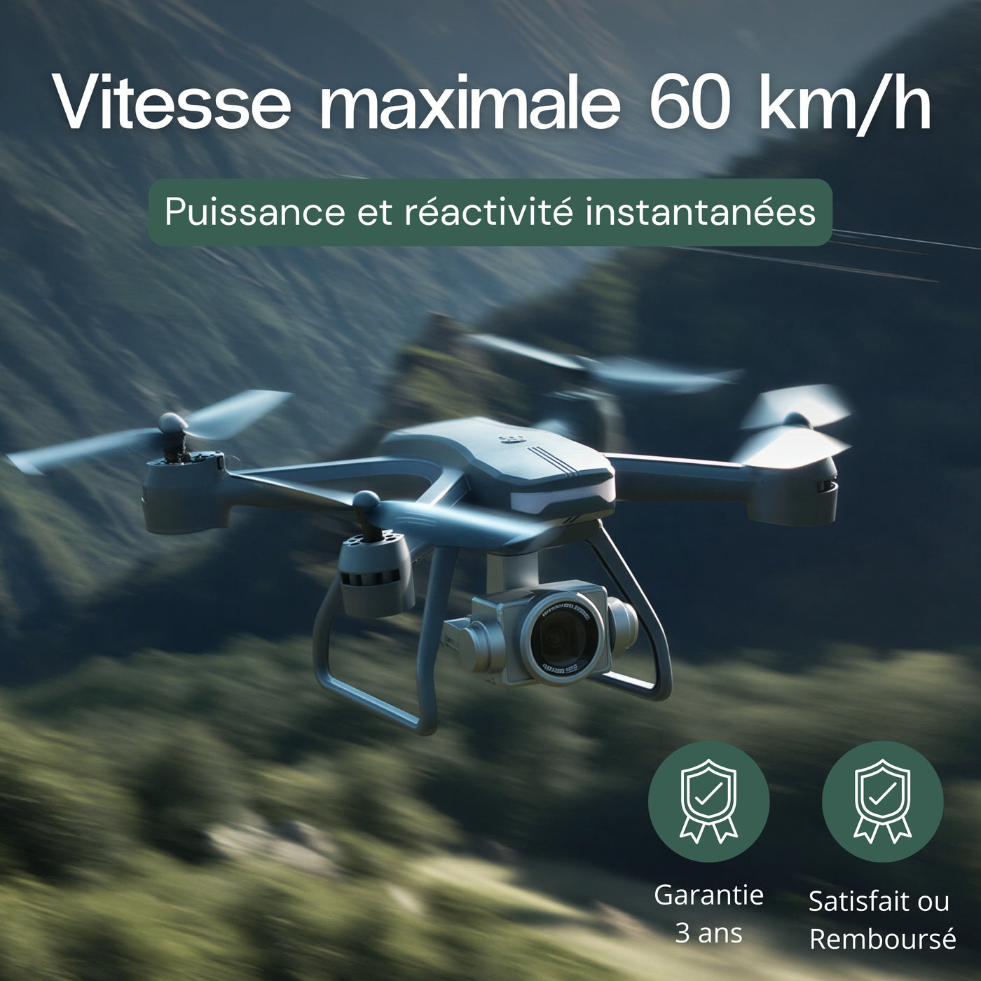 La portée de contrôle est d'environ 3000 mètres, largement suffisante pour explorer votre terrain et capturer des images spectaculaires.