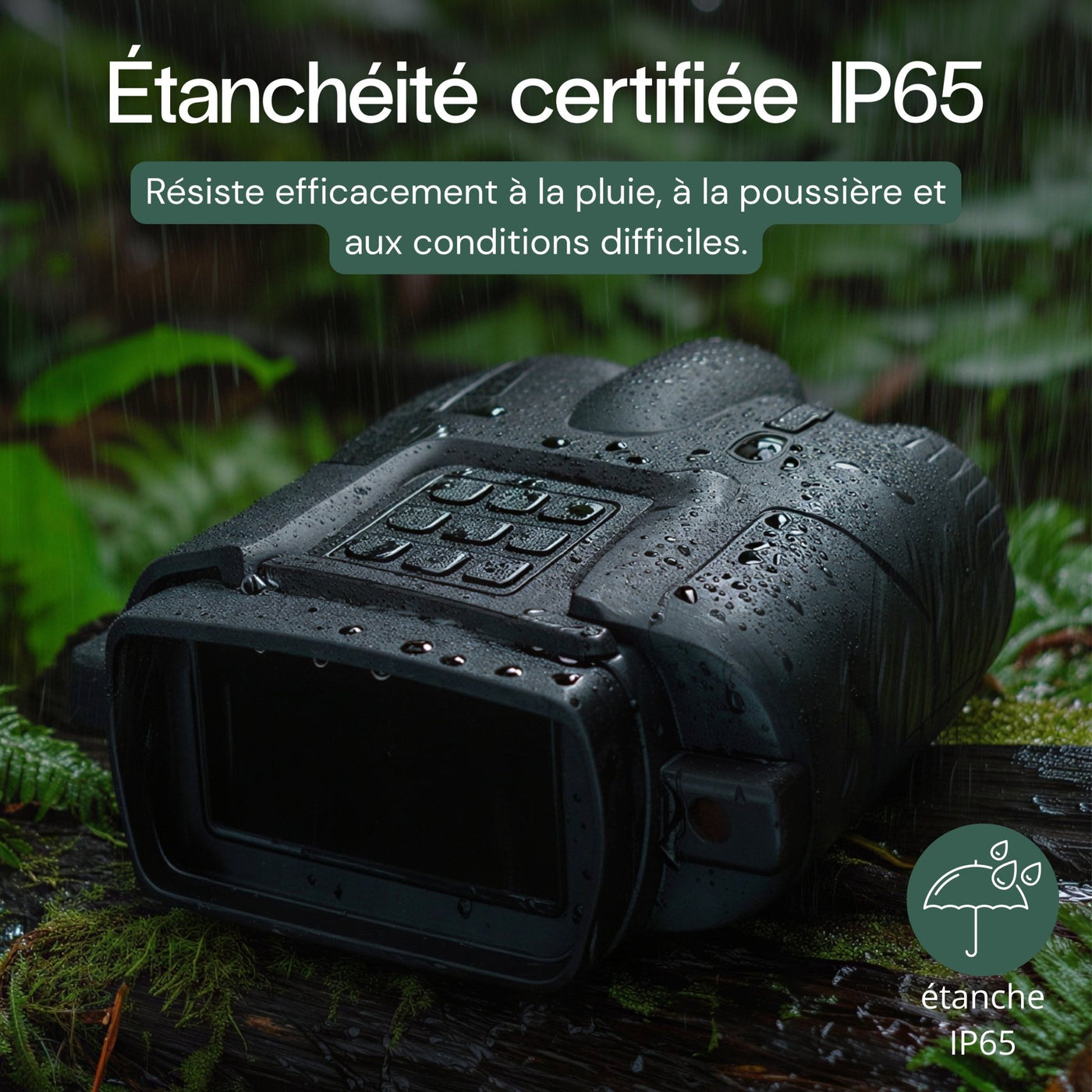 Étanchéité IP65 : résiste à la pluie et à la poussière